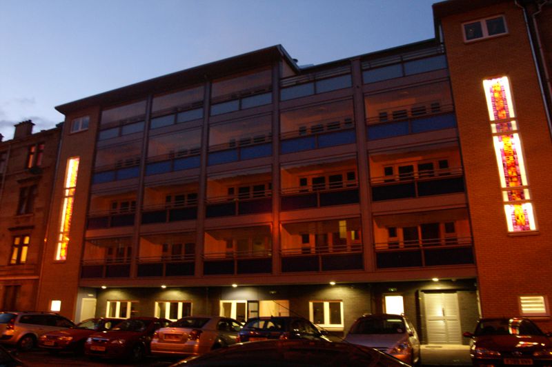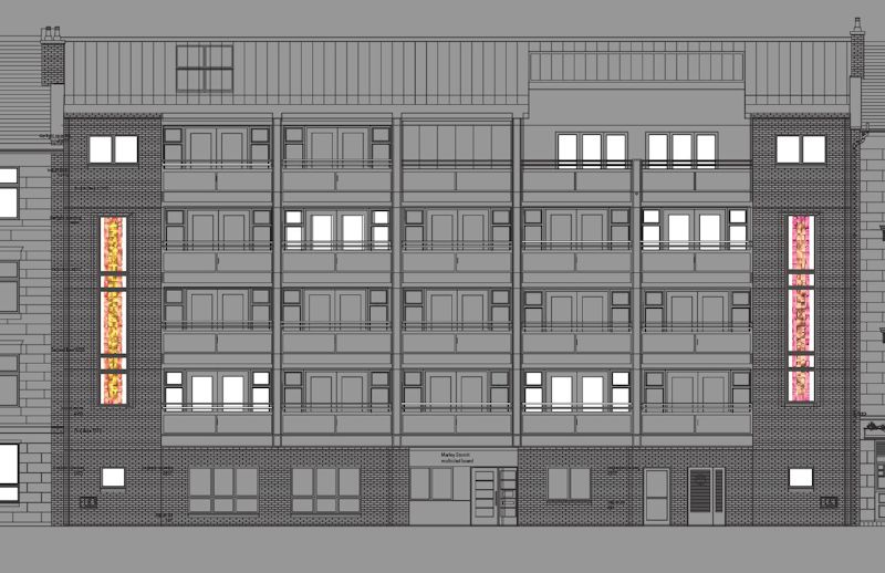 These two large windows in the stairwells will create a rich and vibrant magical space internally during daylight hours. However this concept has been created and scaled to be an external enhancement to the building in the evening. The works will create an immediately recognisable identity for this building.
