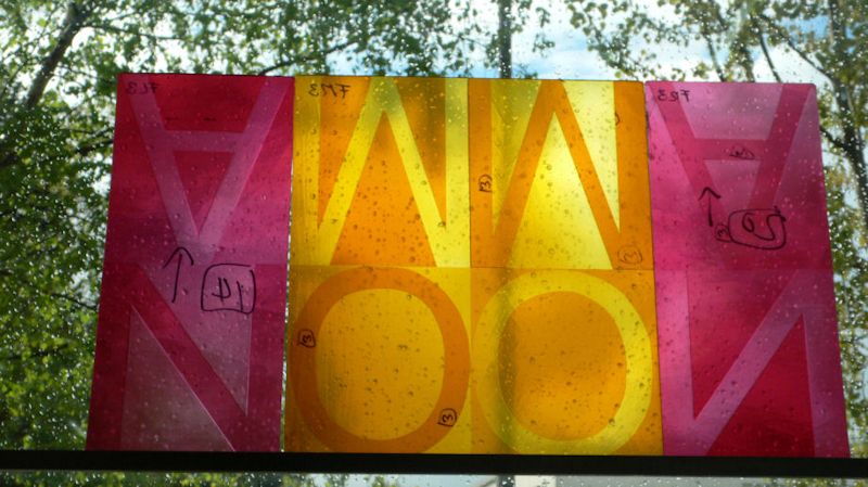 I worked through several possibilities of what would be appropriate. The two windows here are based on the words, NURTURE AND RESPECT abd CHANGING MEMORIES. Through reflection, and fading, the letters are changed and transformed into something although still recognisably text , becomes much more than this.