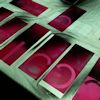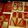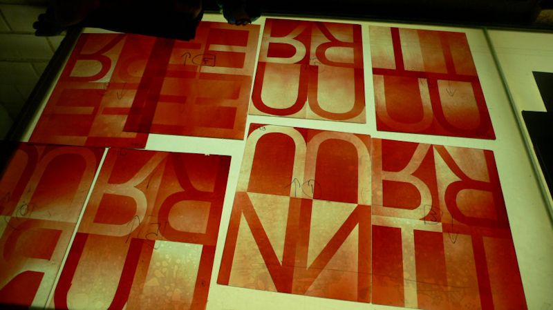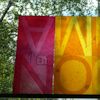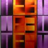 Each letter of these words is reflected horizontally and vertically forming a block, Reflection being related to memory. Each letter and the background to each letter is faded in some way. I find that this juxtaposition of fading elements creates a vibrant and exciting abstract image.